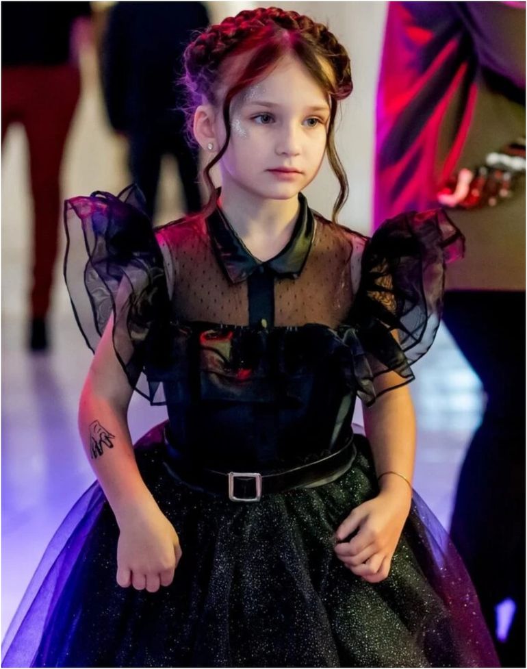 Por eso. Cada vez más niñas, entre ellas Alma, eligen disfrazarse de este personaje para sus cumpleaños. La hija de Mariano Martínez y Camila Cavallo lució el vestido negro y el peinado de trenzas que Merlina usa en el baile escolar.