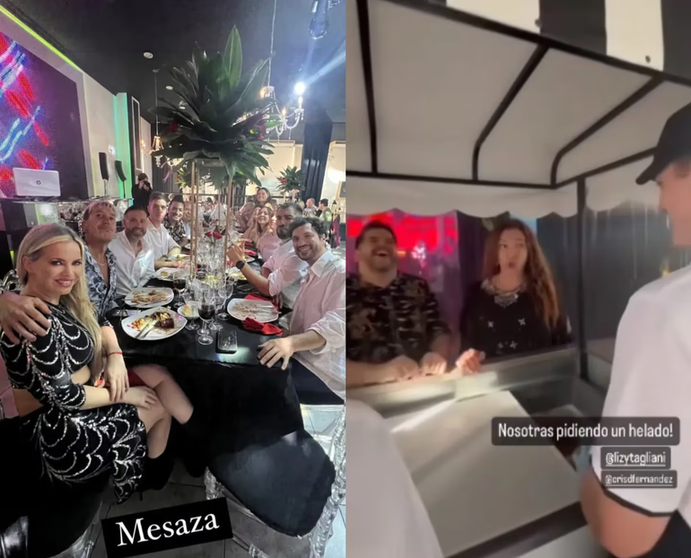 Varios de ellos compartieron fotos y videos de la celebración que se llevó a cabo el domingo al mediodía. “Un almuerzo tranqui”, dijo Barby Franco por el descontrol de baile que había en la fiesta. La entrada del salón contó con un mega cartel blanco con los nombres de la pareja: “Lizy & Seba”. Además, hubo un DJ con una máscara de Daddy Yankee a cargo de la musicalización y un carrito para pedir distintos sabores de helado.