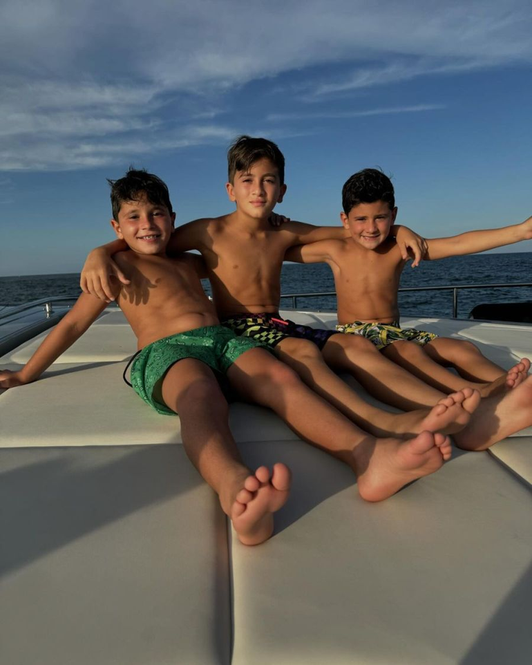 Con sonrisas en sus rostros, todos los miembros de la familia de Lionel Messi posaron ante la cámara. Pero los tres niños se llevaron toda la atención al mostrarse muy relajados en la embarcación, como así también dieron ternura por el abrazo que se dieron para una de las fotos que sacó su mamá, Antonela Roccuzzo. Además, todos se dieron un chapuzón en el mar, siendo evidente en las imágenes que todos estaban mojados.