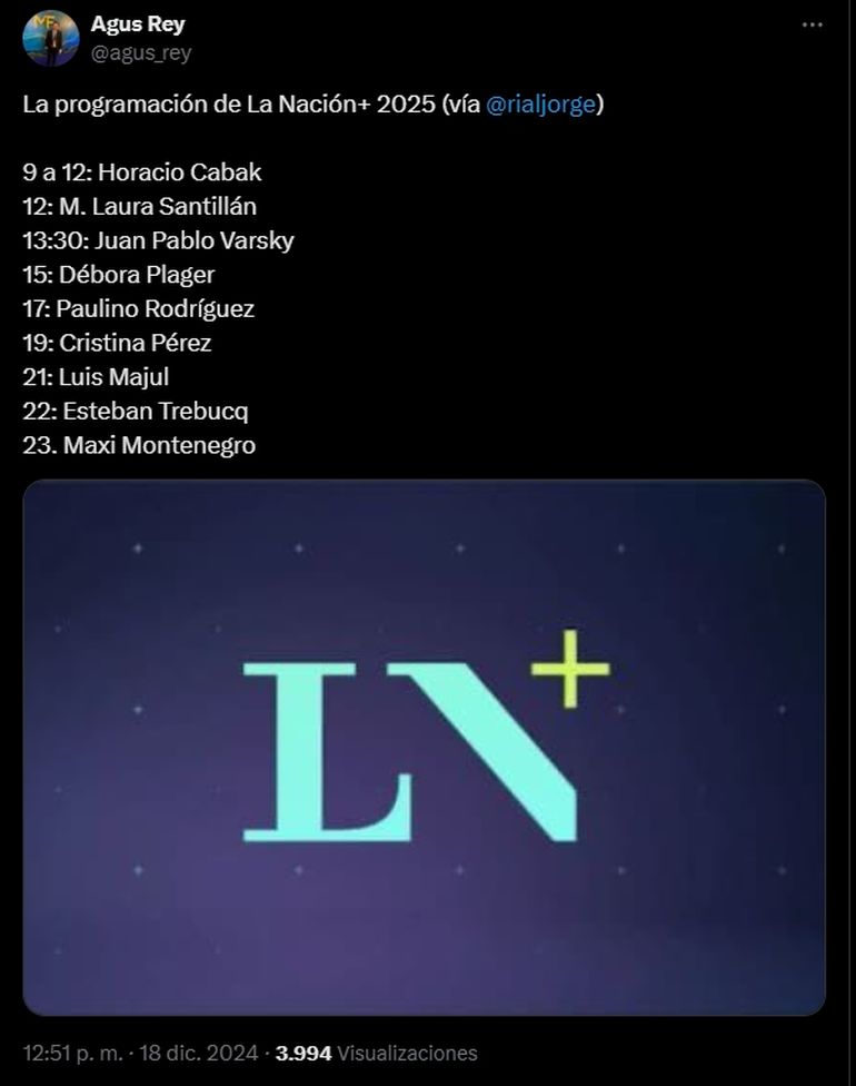 Luego de confirmarse la salida de varias figuras y la llegada de Cristina Pérez, se comenzó a acomodar la grilla de La Nación+ de cara al principio del 2025. Es que luego de las altas y bajas, se supo cómo quedará la programación.