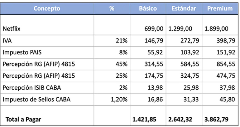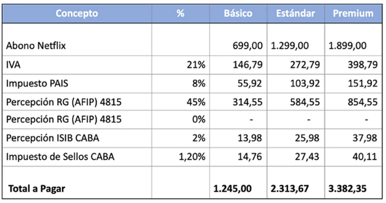 Esto implica que se va a tener que pagar un 103,41% de impuestos adicionales al servicio de Netflix: