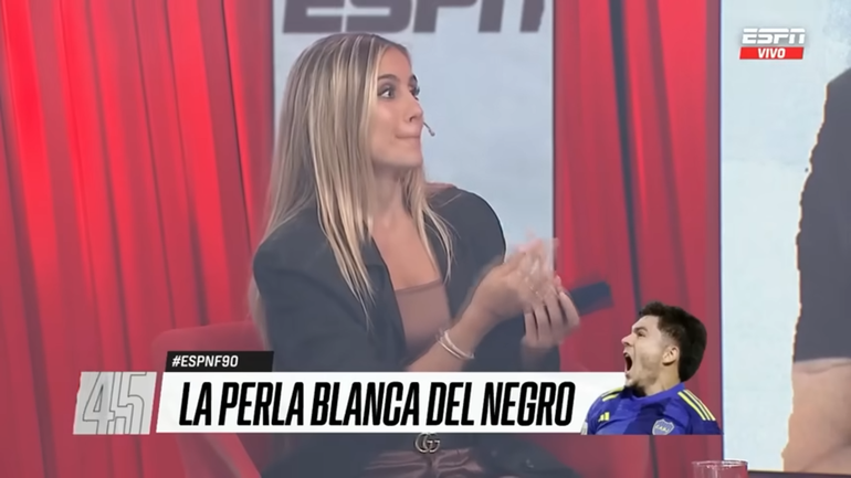 Mientras destacaba las virtudes del lateral de Boca, fue agregando sutilezas alusivas a Morena, que era insistentemente ponchada por la cámara del programa de ESPN, ante las sonrisas de sus compañeros de panel, entre los que estaban Daniel Arcucci, el Chavo Fucks y los exfutbolistas devenidos panelistas, Daniel Manusovich, Oscar Ruggeri, y el Mono Navarro Montoya.