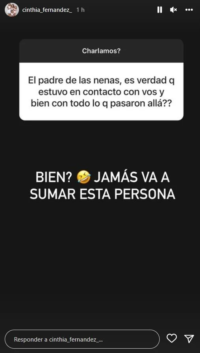 Y quien sí jugó un papel clave fue su ex, Matías Baldini. En consecuencia, la mediática le dedicó un emotivo mensaje. "Siempre. Y no viajó porque no lo dejé. Además, me ofreció internarla en Miami y un avión sanitario", contestó Cinthia cuando le preguntaron si él se contactó con ella cuando estaba en Punta Cana.