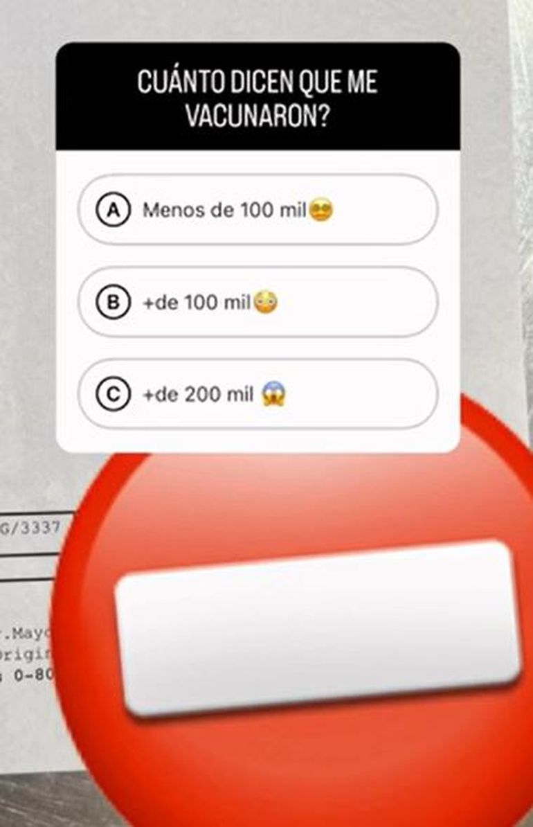 "¿Cuánto dicen que me vacunaron? Menos de 100 mil pesos, más de 100 mil pesos o más de 200 mil pesos", fueron las tres opciones que Cinthia, mediante la herramienta de encuestas, les dio a sus seguidores a través de sus historias de su cuenta de Instagram.
