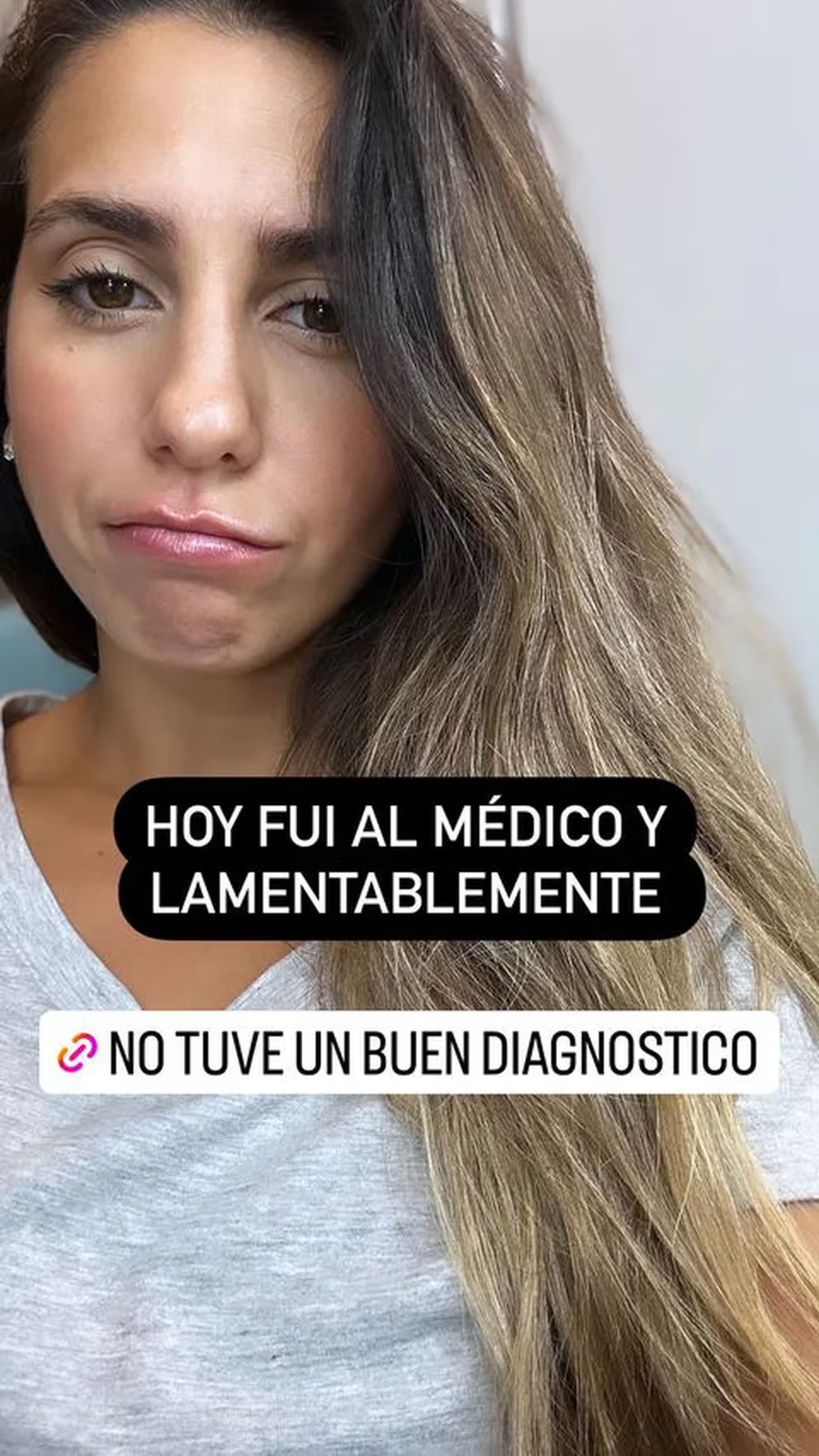 A través de una historia en su cuenta de Instagram, publicó una imagen en que se la podía ver con cara seria, con un texto que la acompañaba en el que relataba: “Hoy fui al médico y lamentablemente no tuve un buen diagnóstico”, lo que incluía un enlace a su último video publicado. Allí también un escrito se encuentra sobreimpreso en las imágenes donde se detalla: “Fui al ginecólogo a hacerme una ecografía y el resultado fue grave”.