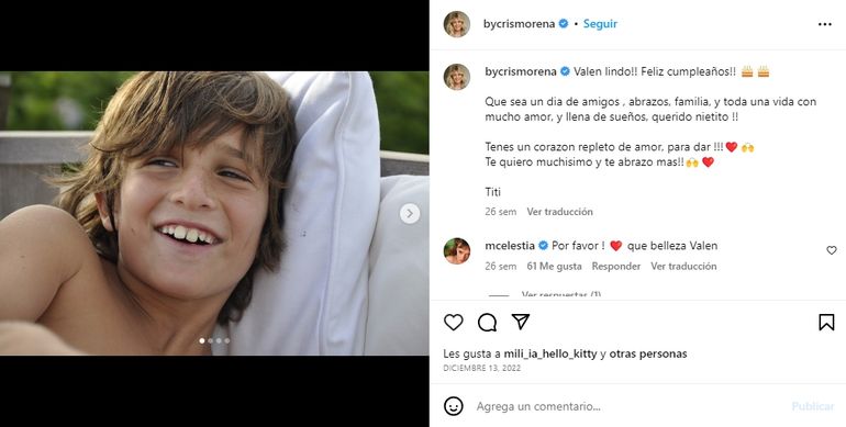 Es por eso que hace unos meses celebró el cumpleaños número 20 de Valentín y aprovechó para lanzar una dedicatoria: “Valen, lindo, ¡Feliz cumpleaños! Que sea un día de amigos, abrazos, familia, y toda una vida con mucho amor, y llena de sueños, querido nietito. Tenés un corazón repleto de amor para dar. ¡Te quiero muchísimo y te abrazo más! Titi”.