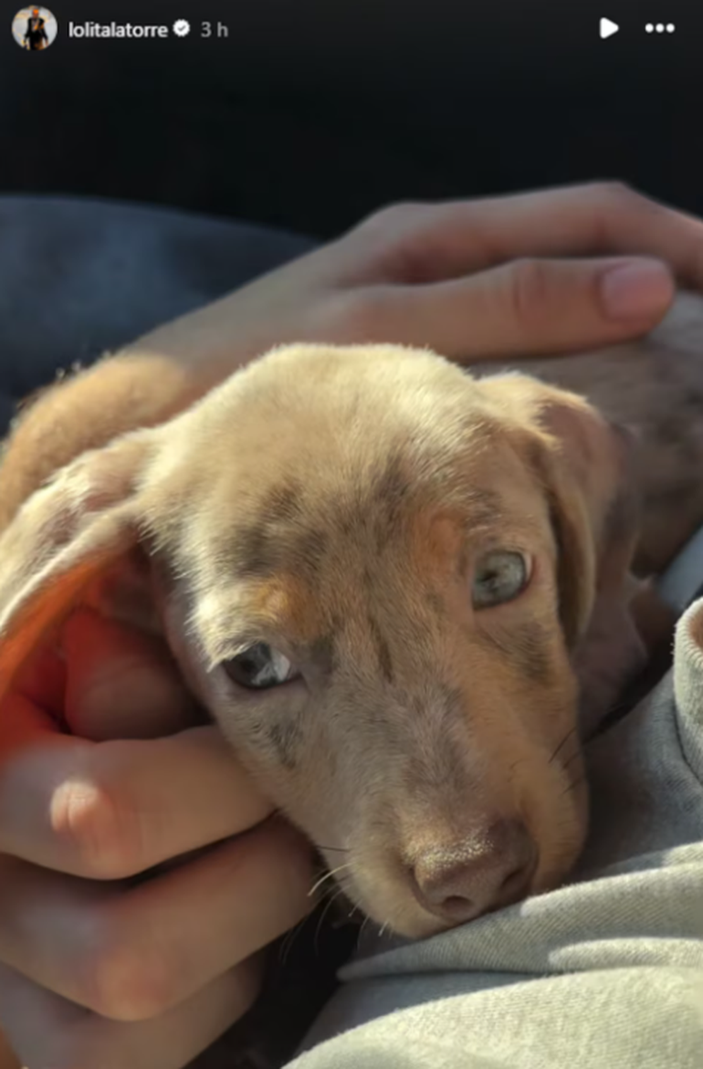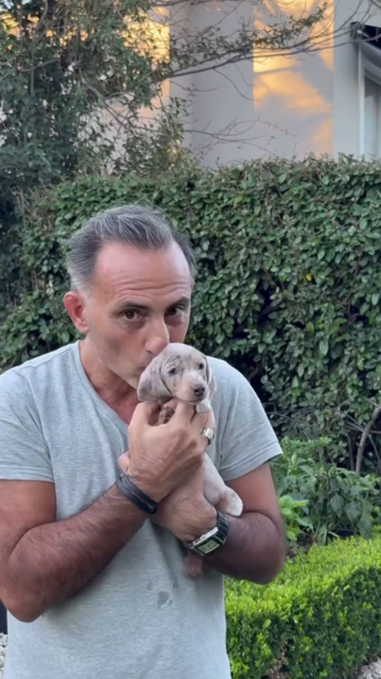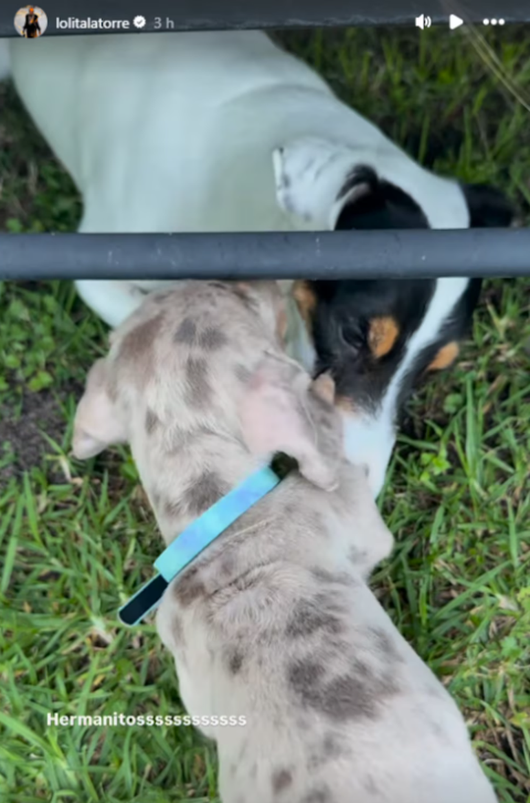“Adoptamos un perrito nuevo para que juegue con Polito”, contó el exfutbolista mientras mostraba cómo el dachshund corría junto al Jack Russel que tienen desde 2020. “¡Qué hermoso!”, expresó, obnubilado junto a sus hijos, Dieguito y Lola Latorre, al ver cómo se divertía con su otro perro.