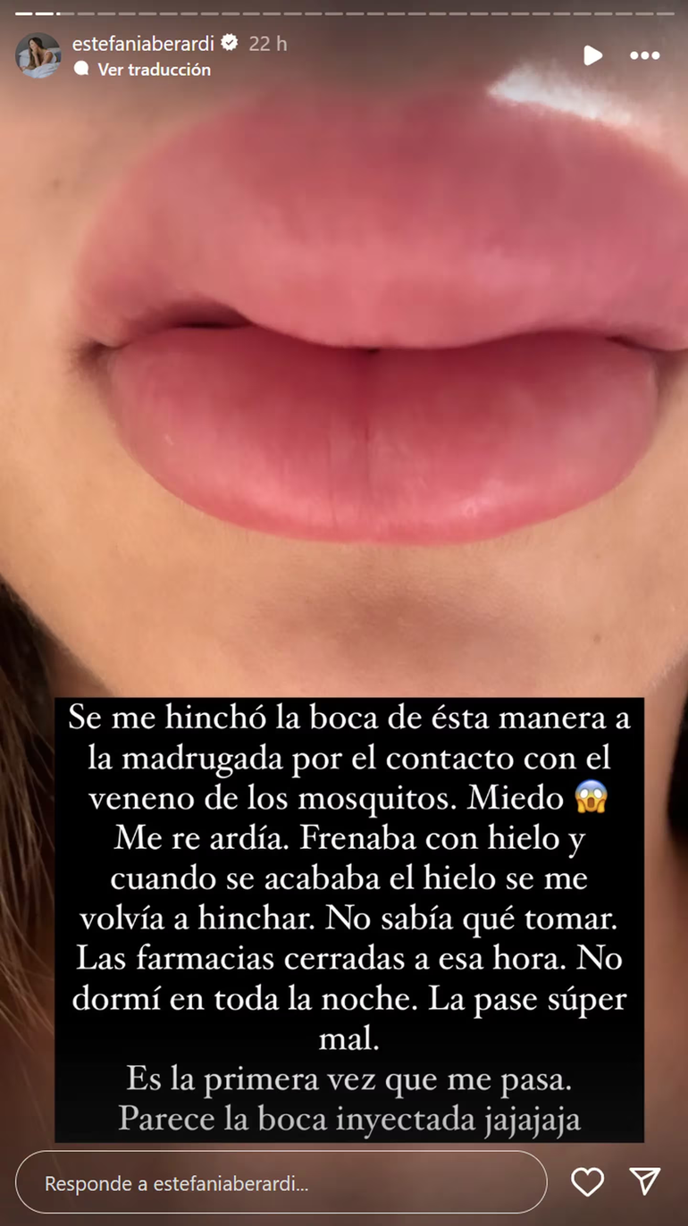 Como le quedó la boca a Estefanía Berardi tras una reacción alérgica