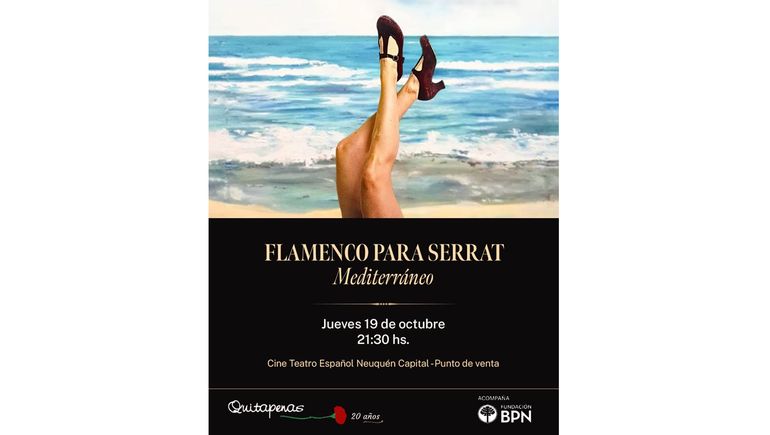 En la oportunidad, la compañía de flamenco Quitapenas festejará sus 20 años con el estreno de "Mediterráneo Flamenco para Serrat". Se trata de un show creativo que conjugará la danza con a esas canciones tan queridas por el público neuquino del repertorio más significativo del artista catalán.