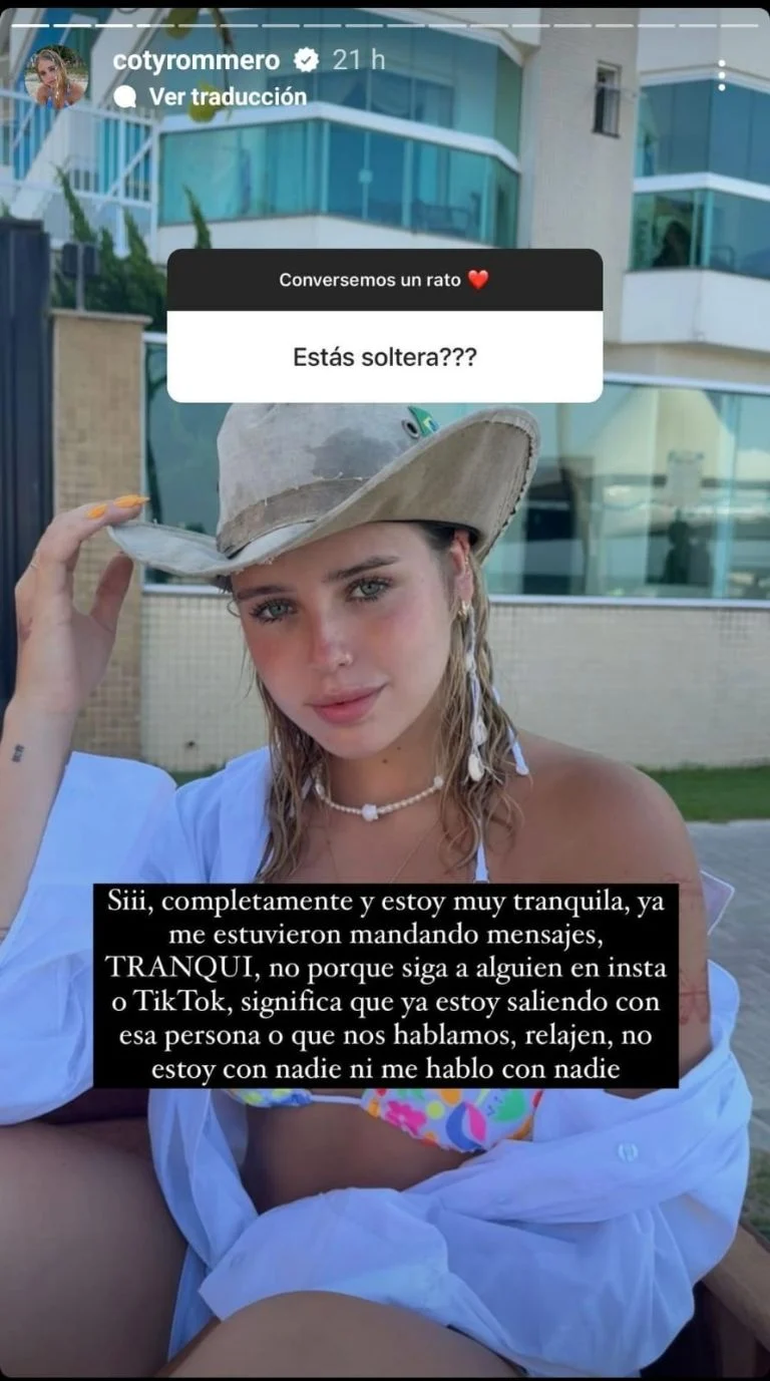 Además, aclaró: “Ya me estuvieron mandando mensajes, tranqui, no porque siga a alguien en instagram o tik tok significa que estoy saliendo con esa persona o que nos hablamos”.