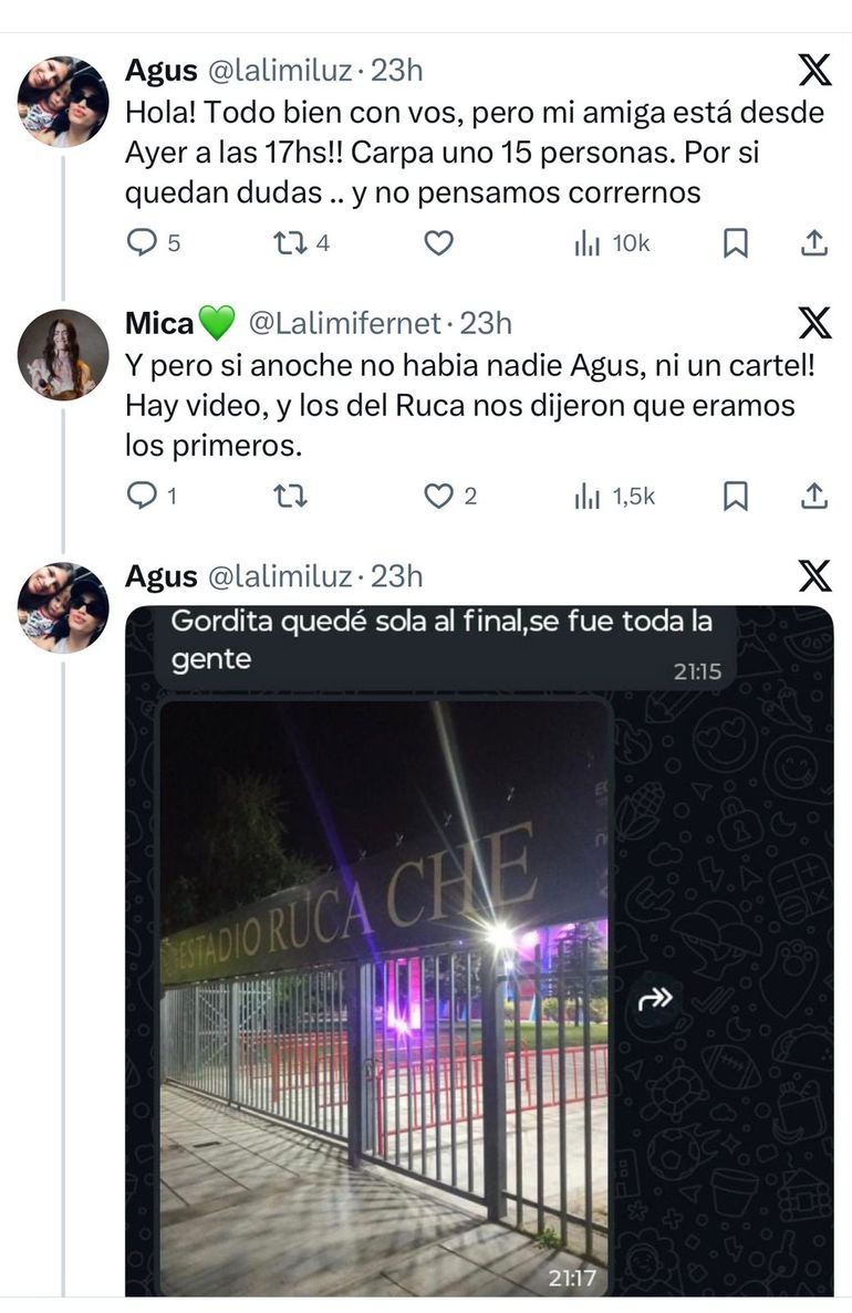 El posteo de la fanática no tardó en viralizarse y hasta tuvo un cruce virtual con otra seguidora. “Hola! Todo bien con vos, pero mi amiga está desde ayer (15 de octubre) a las 17. Carpa uno, 15 personas. Por si quedan dudas.. y no pensamos corrernos”, escribió dejando en claro que harán todo lo posible para ser las primeras en ingresar al estadio ubicado en calle Antártida Argentina 3901.