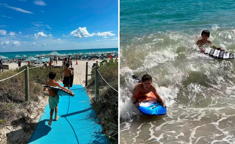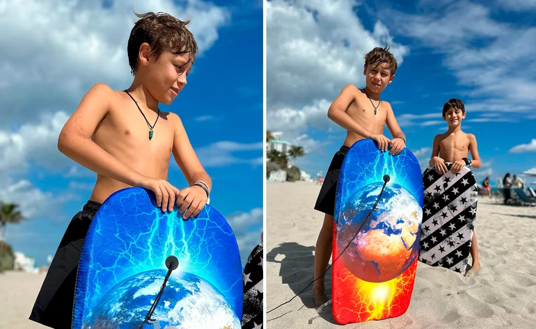 Beltrán y Benicio se llevaron sus tablas de barrenar a la playa y disfrutaron de muchísimas horas de diversión en el agua, sin dudas fue la actividad preferida de los chicos.
