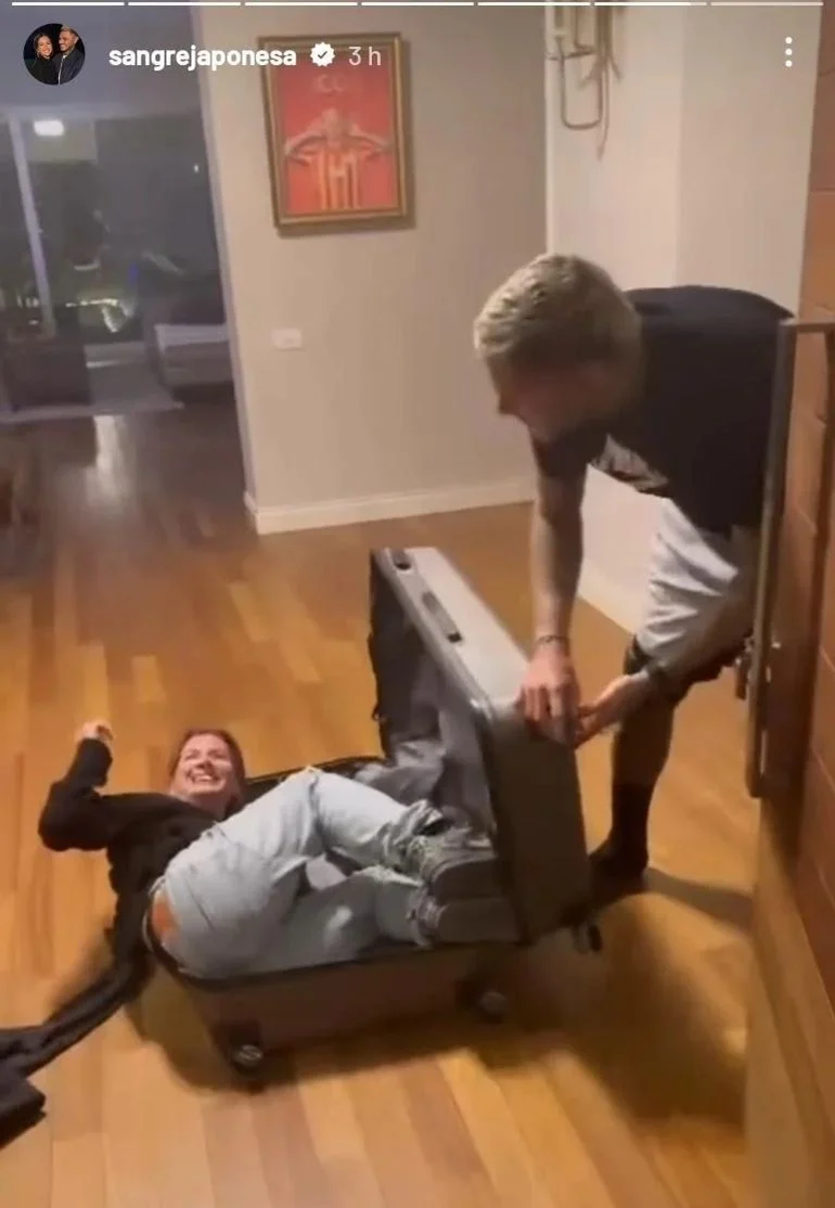 La China Suárez dejó a sus seguidores de Instagram sin palabras al mostrar la extraña manera en la que sorprendió a su pareja. La actriz se metió en una valija y fue llevada por sus amigos hasta la casa del futbolista, quien quedó sin palabras al abrir la maleta y ver a su novia en su interior.