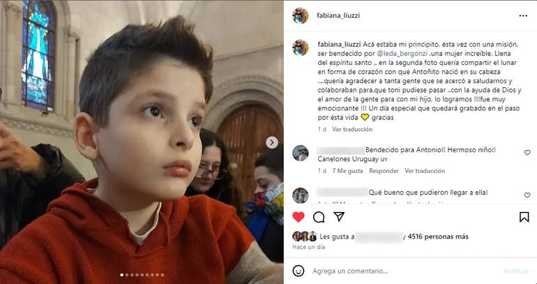 En tanto, en un siguiente posteo, Fabiana sumó una serie de postales dentro de la iglesia y detalló: “Acá estaba mi principito, esta vez con una misión, ser bendecido por @leda_bergonzi, una mujer increíble, llena del espíritu santo”.