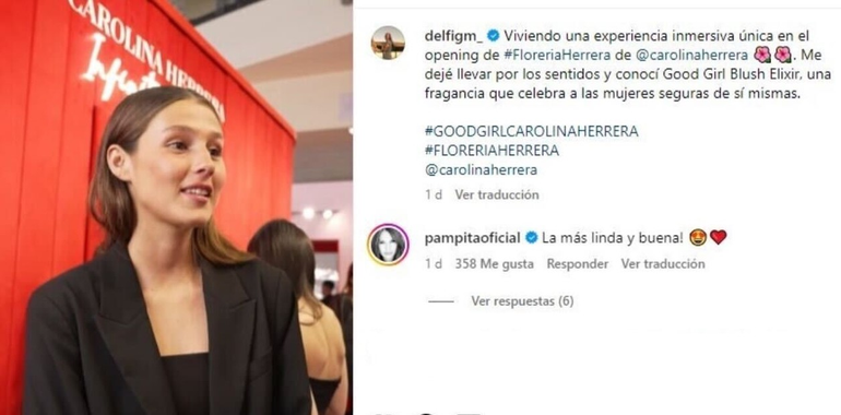 Delfina estuvo presente en el estreno de Florería Herrera, un espacio nuevo en el shopping Unicenter, creado por Carolina Herrera y que estará disponible hasta el domingo 20 de octubre con motivo del Día de la Madre. Además, la joven ayudó a promocionar una de las fragancias de la firma, llamada Good Girl Blush Elixir.