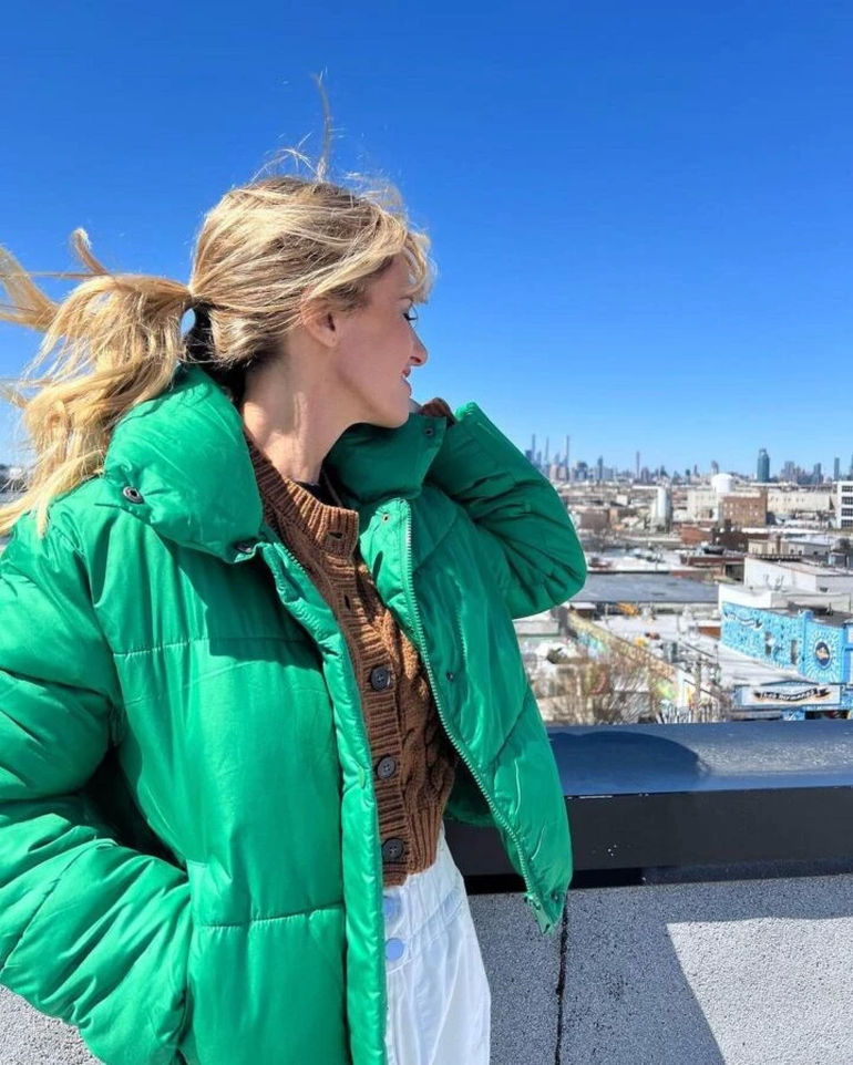 Teniendo en cuenta el frío, aprovechó para lucir una nueva campera de una de las marcas que suele vestirla. Se trata de una campera puffer matelaseada con cuello alto y bolsillos en un tono verde, que fue elogiada por todos sus seguidores.