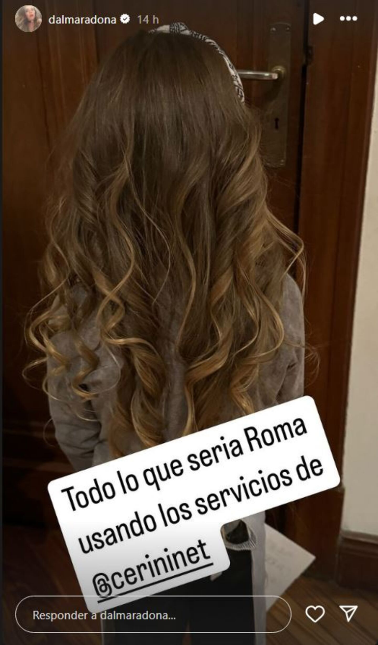 Raras son las veces en las que Dalma Maradona suele mostrar en redes sociales aspectos de la vida de sus hijas Roma y Azul, las pequeñas que tiene con su esposo, Andrés Caldarelli. En esta oportunidad, la hija del Diez mostró el nuevo look de la mayor de las hermanitas.