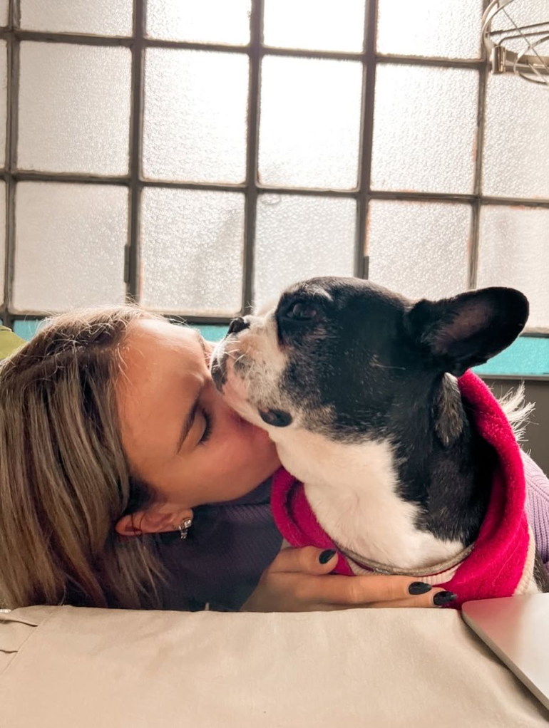 Se trataba de una Frenchton, que es el resultado de la cruza entre un Bulldog Francés y un Boston Terrier. A principios del 2025, algunos de sus seguidores habían expresado preocupación, ya que se había dado a conocer que la perra tenía una enfermedad oncológica. Sin embargo, la modelo había llevado tranquilidad al contar de que estaba controlada y siendo cuidada por ella y por su pareja, quienes no dudaban en refugiarse en la mascota.