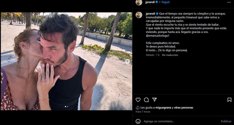 Julieta Prandi no perdió la oportunidad de dedicarle unas tiernas palabras a Emanuel Ortega por el día de su cumpleaños. Es que ella siempre destacó que su pareja llegó en un momento clave y tras una relación dolorosa. Es por eso que aprovechó este día de celebración para expresarle todo su amor en las redes sociales.