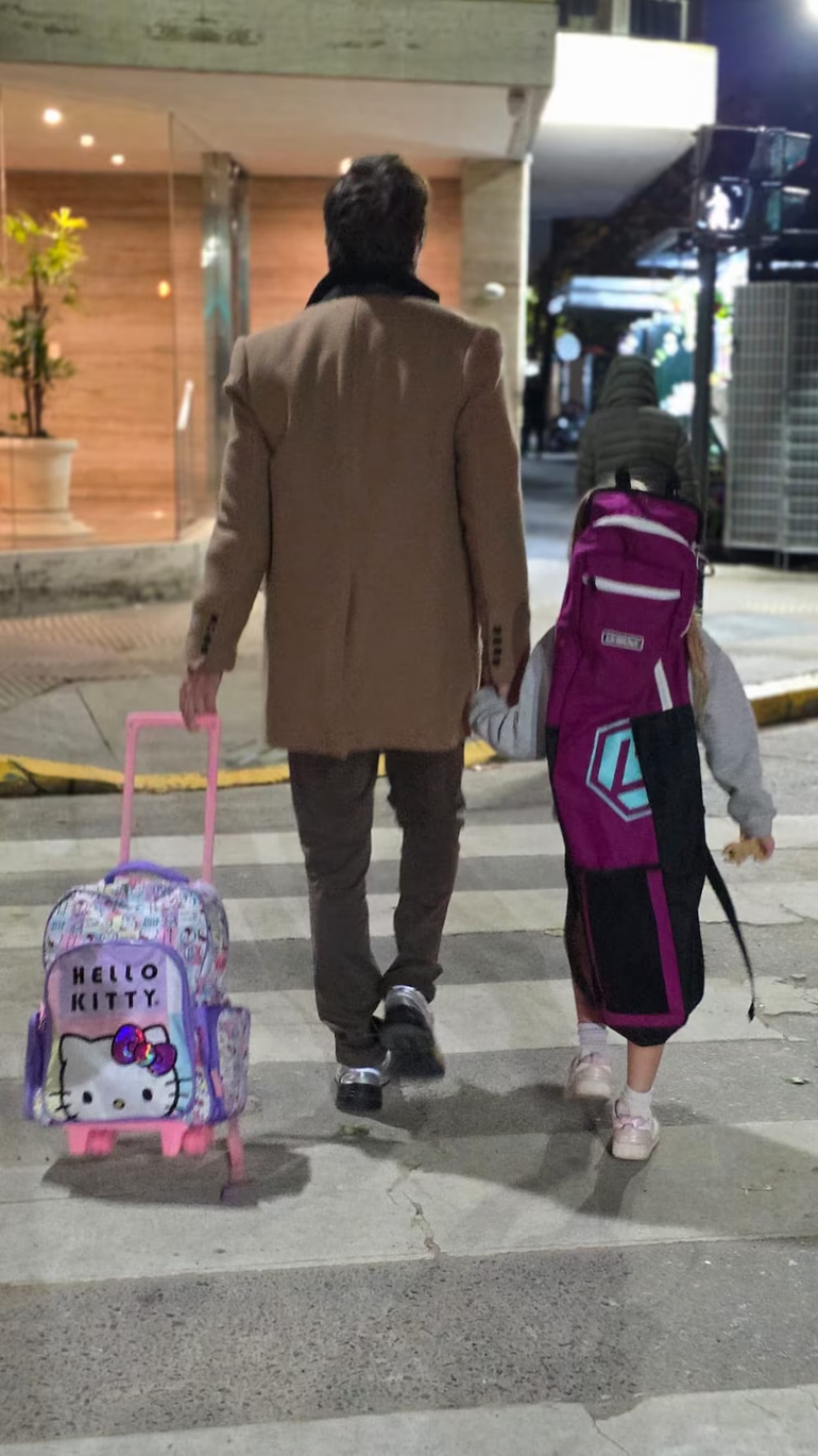 La pequeña, por su parte, camina a su lado con un bolso de hockey, deporte que práctica su hermana mayor, en color magenta en la espalda. Con la intención de aliviar la carga de su hija, Vicuña lleva la mochilita de Hello Kitty, animé que se convirtió en un símbolo en la guerra silenciosa entre Wanda Nara y la China.