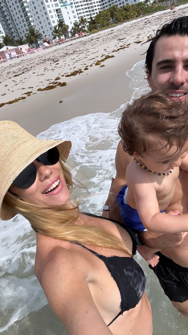 En un momento, los padres y Cruz decidieron ir al mar para divertirse, y la modelo llevó su celular para dejar registro. Al tomar la foto y compartirla, no tapó el rostro de su bebé, quien estaba a upa de su papá y seguía fascinado con las olas que corrían debajo de él.