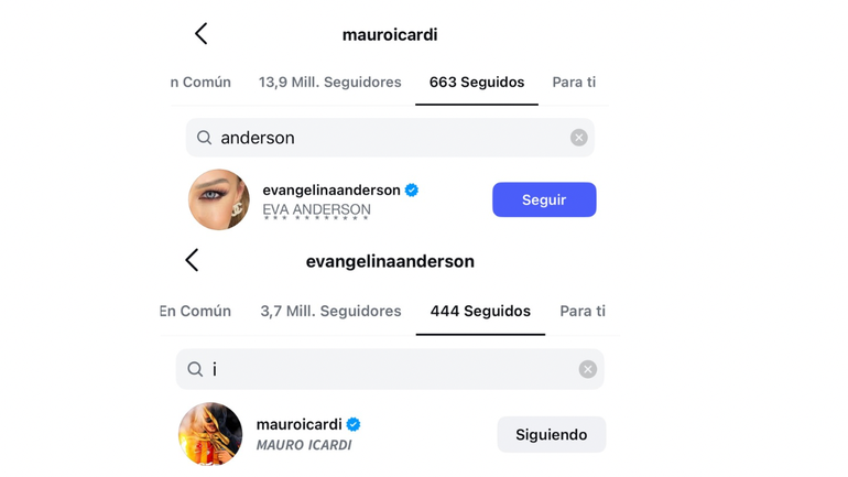 Sin embargo, en escenario apareció alguien inesperado, el ex de Wanda Nara. Sí, Mauro Icardi. El novio de la Eugenia "La China" Suárez comenzó a seguir a Evangelina Anderson y todo quedo expuesto por Juariu. La periodista tucumana notó que el futbolista está entre los 3,7 millones de seguidores y que la modelo también lo sigue.