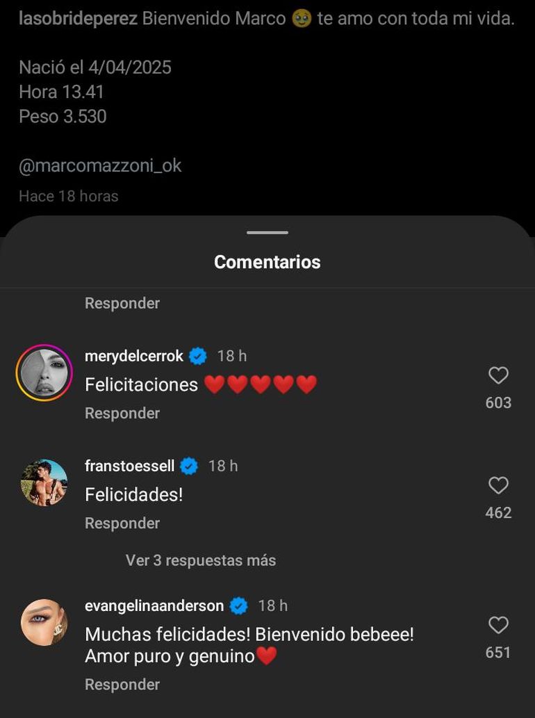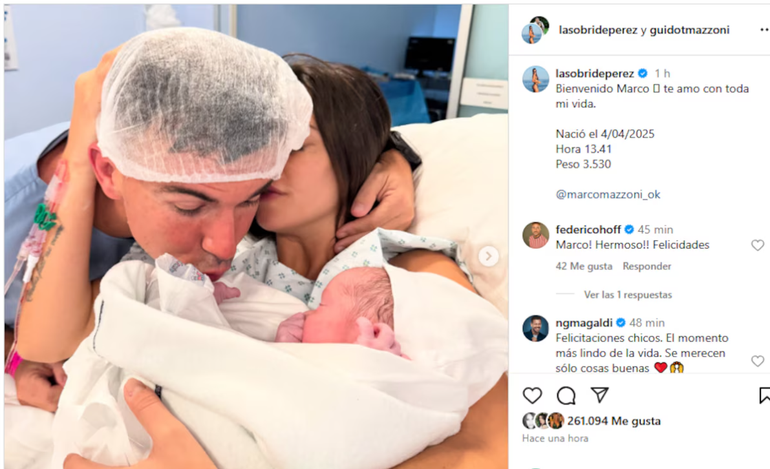La reciente llegada de Marco, hijo de Sol Pérez y Guido Mazzoni, generó una oleada de felicitaciones en Instagram, donde decenas de figuras del espectáculo, el periodismo y la televisión se sumaron con mensajes de afecto.