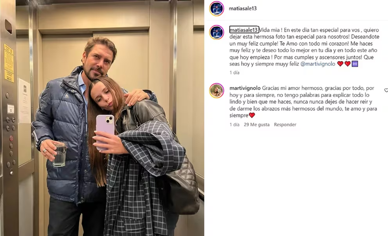 Matías Alé utilizó su cuenta de Instagram para dedicarle un tierno y sentido mensaje a Martina Vignolo, su novia, por el día de su cumpleaños. “Vida mía! En este día tan especial para vos, quiero dejar esta hermosa foto tan especial para nosotros! Deseándote un muy feliz cumple!”, escribió el artista en el posteo de una foto que se tomó con su novia en un ascensor.