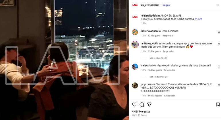 Durante el fin de semana, se viralizó una fotografía que dejó en evidencia el romance entre Nico y Dai. La imagen fue compartida por la cuenta de Instagram del programa LAM, acompañada por el texto: "Amor en el aire. Nico y Dai acaramelados en la noche porteña. #LAM", donde se los ve sentados frente a un gran ventanal en un restaurante, conversando mientras él le acariciaba la espalda.