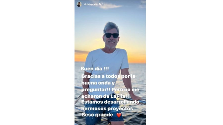 Pablo "Chato" Prada rompió el silencio tras los rumores que indican que existe un conflicto con Marcelo Tinelli, y negó haber sido despedido de LaFlia. A través de su cuenta de Instagram, el histórico productor del conductor expresó: "Buen día. Gracias a todos por la buena onda y preguntar. Pero no me echaron de LaFlia. Estamos desarrollando hermosos proyectos. Beso grande".