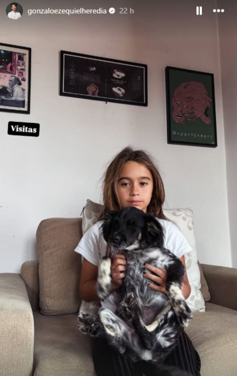 “Visitas”, se acotó en escribir el actor junto a una imagen donde está su hija Alfonsina con Onetti, el perrito que adoptó la familia hace ya un mes. El breve texto llamó la atención ya que de vivir en la misma casa no hablaría de “visitas” lo que da a entender que la pareja no vive junta y que los menores están junto a Gandini.