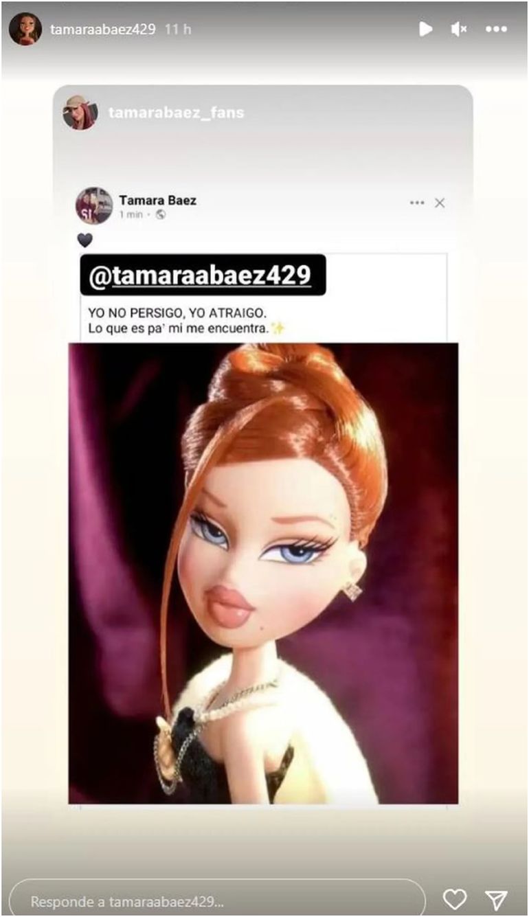 “Yo no persigo, yo atraigo. Lo que es pa’ mí, me encuentra”, escribió en sus redes sociales junto a la foto de una muñeca, un mensaje que los seguidores de la mediática tomaron como una dedicatoria al nuevo novio de Tamara Báez.