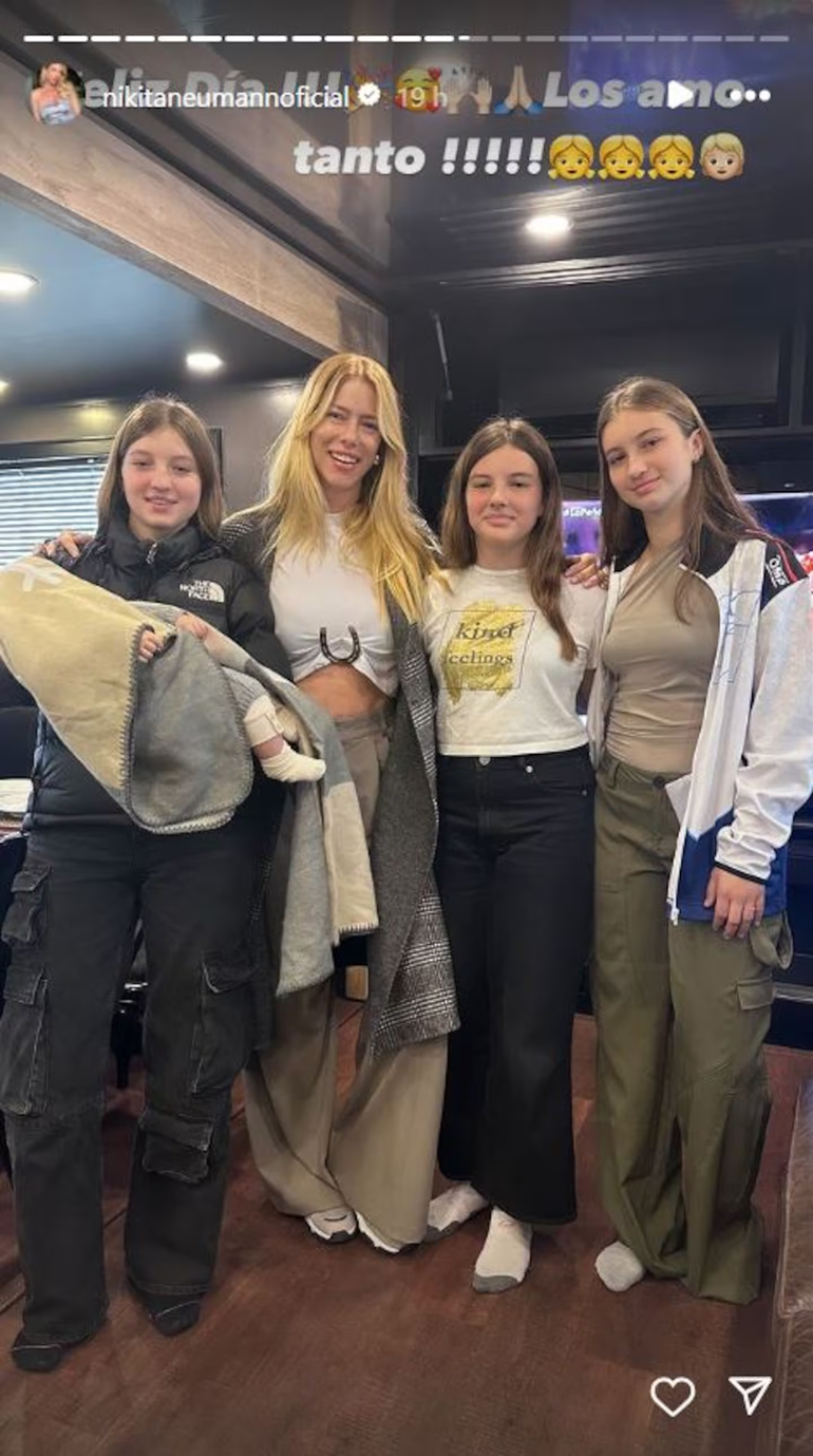 Nicole, además, publicó otras fotos en las que se mostró junto a sus tres hijas y al hermanito más chico, Cruz, de tan solo dos meses. “Feliz día. Los amo tanto”, expuso, junto a una postal en la que aparecen las tres, mientras una de las chicas tiene al bebé en brazos.