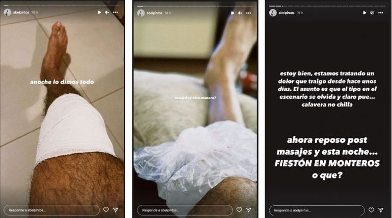 "Anoche lo dimos todo. ¿Acaso hay otra manera?", escribió Abel en sus historias de Instagram. En los posteos se podían ver fotos de su rodilla derecha con vendas y con hielo.