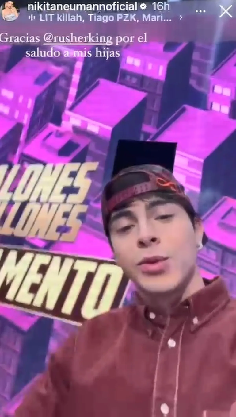 Con mucha onda, Rusherking se filmó y le dedicó un video a las nenas, hijas de Fabián Cubero. Tal fue la alegría de la futura esposa de Manu Urcera que lo compartió en Instagram. Allí, le dijo: “Gracias, Rusher, por el saludo a mis hijas”.