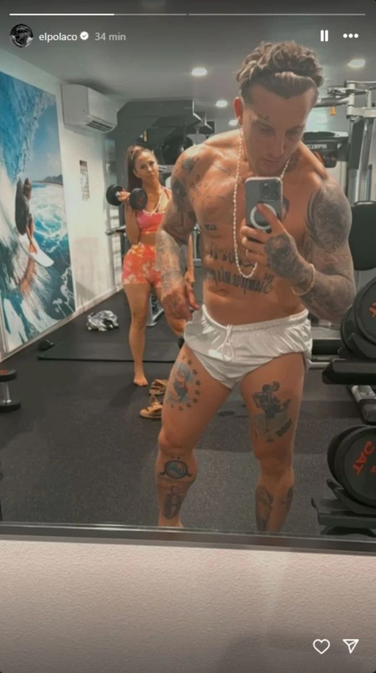 En la imagen, El Polaco aparece sin remera frente a un espejo, lo que permitió a sus seguidores notar el trabajo y la constancia que el cantante ha puesto en su físico en los últimos meses. Con el torso descubierto y un short blanco que dobló para mostrar más detalle de sus piernas y sus tatuajes, El Polaco rompió con el look habitual que suele lucir en los escenarios y en sus apariciones públicas, en las que generalmente se muestra con ropa suelta y con una gorra característica.