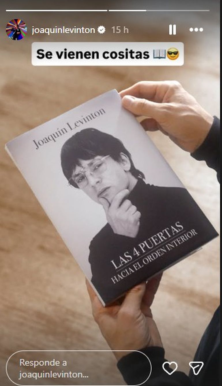 El artista compartió en sus historias de Instagram una imagen del libro que sacará a la venta próximamente y escribió: "Se vienen cositas". En la tapa de la producción se ve al cantante pensativo, intelectual y sobre el título del libro "Las 4 puertas hacia el orden interior".
