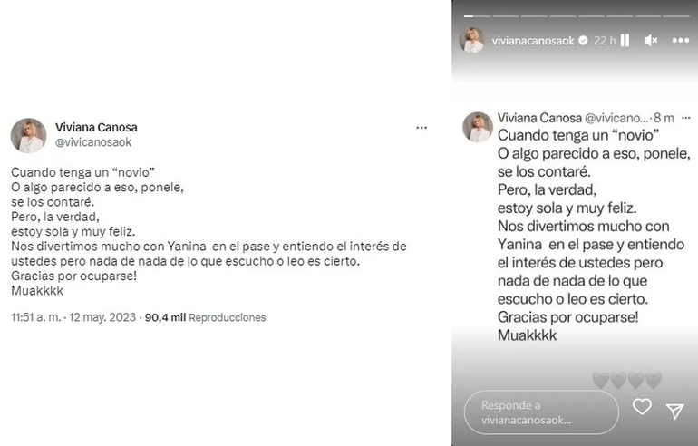 "Nos divertimos mucho con Yanina en el pase y entiendo el interés de ustedes pero nada de nada de lo que escucho o leo es cierto. ¡Gracias por ocuparse! Muakkkk", cerró desde sus redes sociales sobre el revuelo que se generó por su amor de verano.