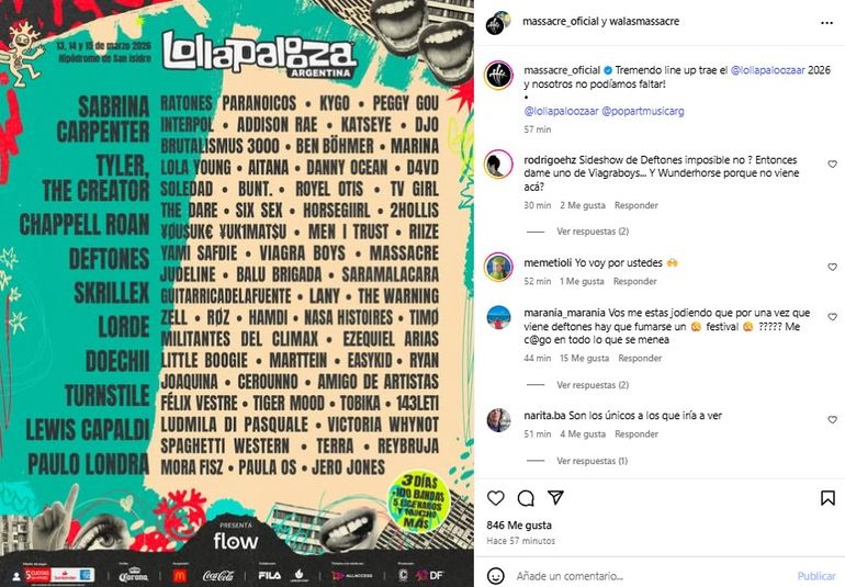 Es oficial: se conoció el line up del Lollapalooza 2026 y se suma el folclore