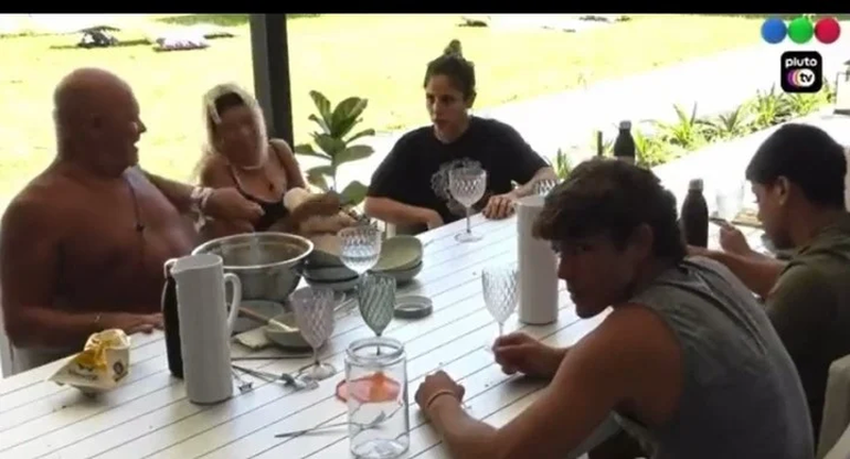 En la mesa del patio se encontraban charlando Romina, Camila, Alfa, Daniela, Thiago y Marcos. La situación se dio mientras estaban de sobremesa, ya que se puede ver cómo acumularon los platos después de comer en un costado de la misma.