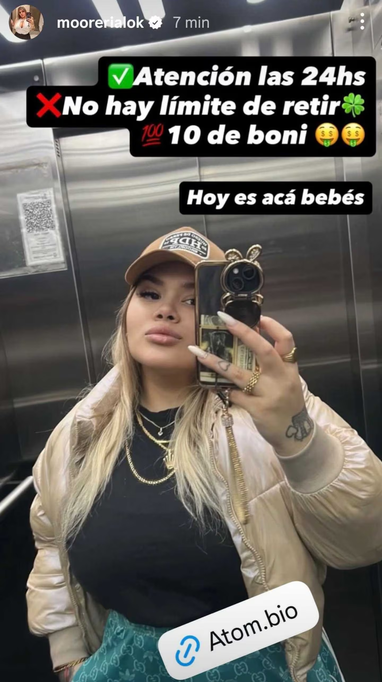 Aunque no tuvo acceso a su perfil, Morena usó otra cuenta para continuar con sus publicidades y generar ingresos. Fue así que lo hizo en el perfil @morerialok donde ya tiene poco más de 106 mil seguidores. De esta manera, Morena fue víctima de los casinos ilegales, los cuáles son constantemente rastreados por la Justicia.