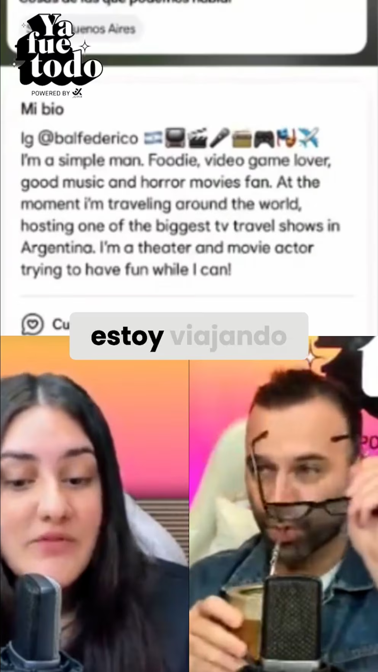 Recientemente hallaron el perfil de Fede Bal en la aplicación de citas Bumble y generó sorpresa entre los conductores de Ya fue todo, el stream que se emite por YouTube. La atención se centró en que el conductor de Resto del mundo eligió redactar su presentación en inglés, un detalle que motivó especulaciones y comentarios durante la transmisión.