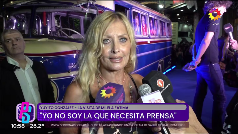 Sobre la presencia de Milei en el show de Fátima, Yuyito fue filosa: “Si hoy le explota el teatro de gente porque va el presidente o al presidente le sirve la prensa del teatro, bienvenido sea. Yo no soy la que necesito prensa porque no tengo que vender ningún ticket de teatro...”.
