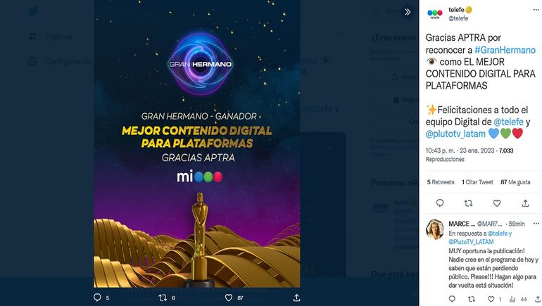 De las más de 30 ternas que hubo, Gran Hermano fue reconocido como Mejor Contenido Digital para Plataformas. El reality compitió con Topa 2022 y 30 noches con mi ex.