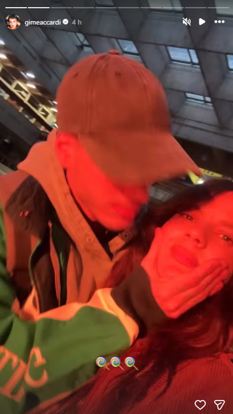 En el clip que la ex Casi Ángeles compartió en sus historias de Instagram se la puede ver con su compañero en Teacher I’d like to f…, quien se acerca por detrás, la toma de la cara con sus manos y justo cuando le va a dar una beso en el cachete, Accardi deja de filmar, agregando un mayor halo de misterio a todo el runrún que los rodea.