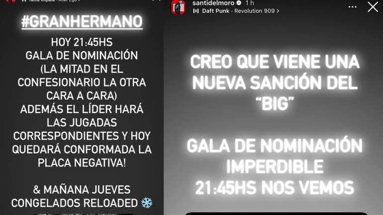 Minutos más tarde, en otra historia de Instagram anticipó que podría haber una nueva sanción, aunque no dio demasiados detalles al respecto. “Creo que viene una nueva sanción del “Big””, escribió Del Moro generando expectativa al público.