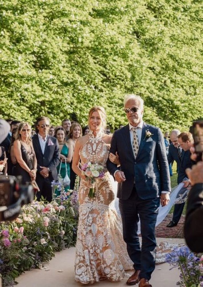 En una de las imágenes que fueron compartidas públicamente, se lo puede ver ingresando al altar de la mano con su padre Bernd Unterüberbacher, a quien conoció en la adolescencia y se mantuvieron distantes durante mucho tiempo, producto de una historia particular que vivieron. La boda, terminó de fortalecer la relación entre la modelo y su papá.