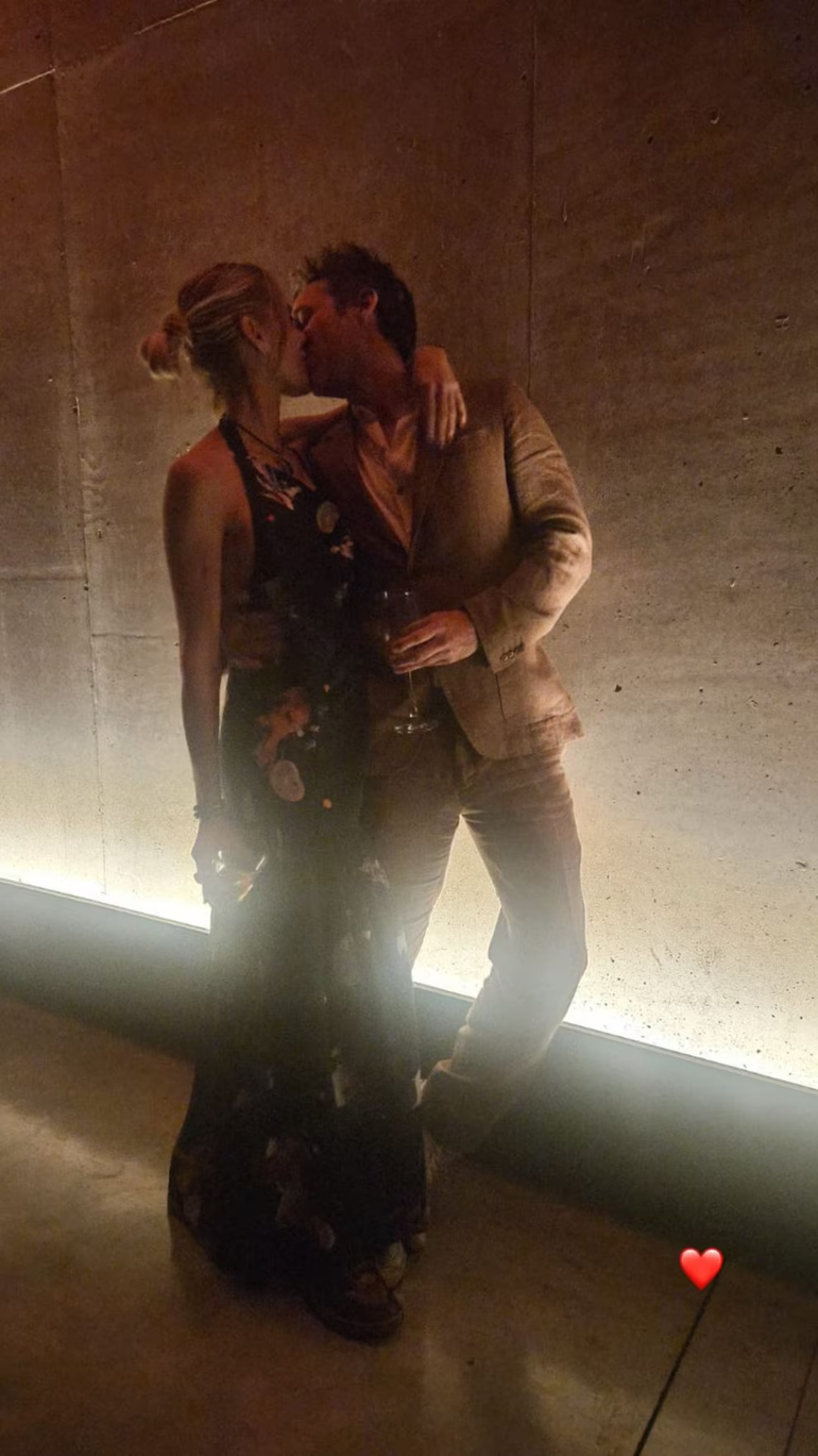 El ex de Pampita y la China Suárez se mostró en sus redes muy acaramelado junto a su novia en una salida nocturna: allí los dos aparecen sosteniendo copas de champagne, el de traje y ella de vestido largo, mientras a él se lo ve agarrándola de la cintura al tiempo que la besa. Ella, por su parte, lo toma del cuello, encantada. Una postal romántica que el galán completó con un emoji de corazón para reflejar el buen momento sentimental que vive.