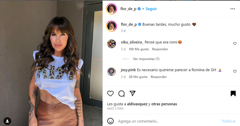 “Con este nuevo color estás muy parecida a Romina de Gran Hermano”, “¿Saliste de Gran Hermano?”, “Pensé que era Romina”, “¡Hola Romi!”, “Sos la Uhrig”, “Es necesario quererse parecer a Romina de GH”, fueron algunos de los comentarios que se pudieron ver en las distintas publicaciones que realizó desde que cambió su look.