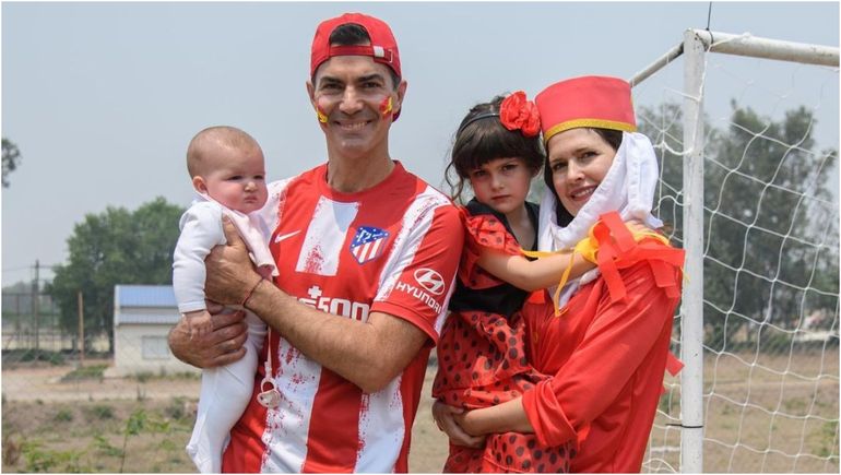 Otro que apareció vestido de manera particular fue Juan Manuel Urtubey, quién posó con una camiseta del Atlético de Madrid y con la cara pintada de rojo y blanco.